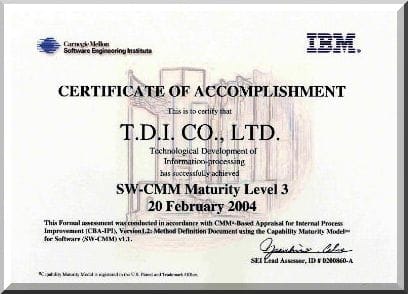 情報技術開発株式会社は、お客様に高品質な製品とサービスをご提供するために「ソフトウェアプロセス改善(SPI:Software Process Improvement)」に取り組んでまいりましたが、2004年2月9日から20日までの間に、SEI認定のリードアセッサーを中心にCMM(Capability Maturity Model [R] Ver.1.1:ソフトウェア能力成熟度モデル)の公式アセスメントを実施し、全社を対象にCMMレベル3を達成していることが認定されました。