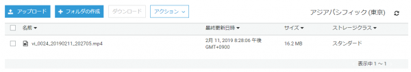 - 動画ファイルをS3のバケットにアップロードする
