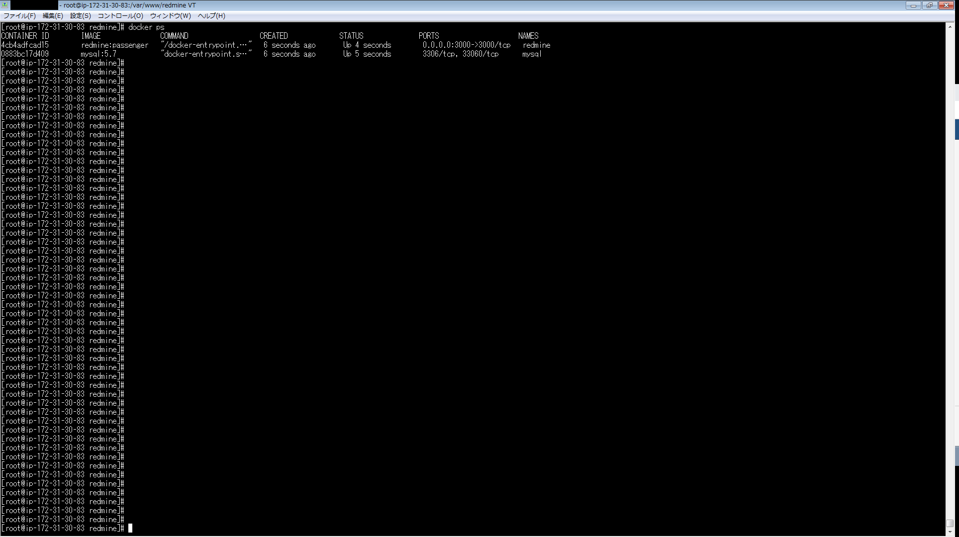 Tera Termにて、作成したインスタンスに接続して、Dockerのインストールと、DockerによるRedmineのインストールをします。
