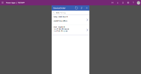 | モデル駆動型アプリ | Common Data Service(※)の機能を最大限に利用することで、デバイス間の応答性が高いUIを自動的に構築します。自由度は少ない分、決まった形式なので短時間でアプリが作成できます。 |