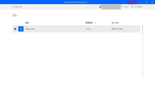 同じように、作成したRPAのシナリオ「Demo_miso」が一覧として表示されています。この画面は「Power Automate」のフロー一覧が表示される画面でもあります。