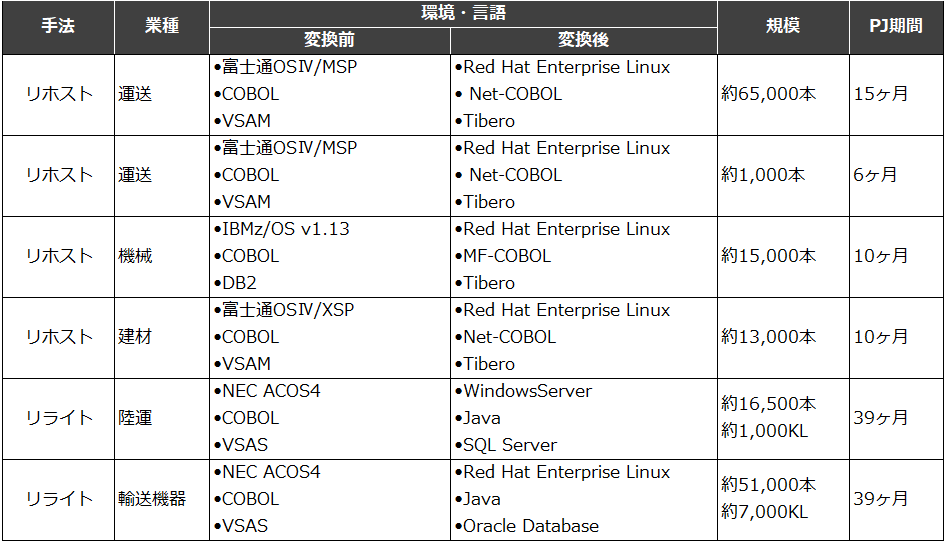 COBOLなどのメインフレームの資産から現在の主流言語のJavaや.netに変更し、保守・運用を効率化したいなどの企業におすすめの手法です。