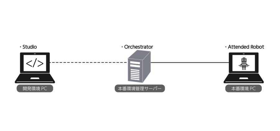 スモールスタートで手動実行ロボットを導入したいときの構成です。