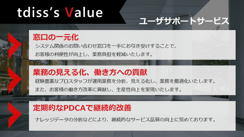お客様目線でわかりやすいサポートを目指して、継続的な改善をおこなっております。当社では300名以上のITIL試験合格者で運用サービスを展開しており、 お客様に満足いただけるサービスをご提供いたします。また5万人以上の従業員様向けヘルプデスクを25年以上継続してご対応させていただいております。